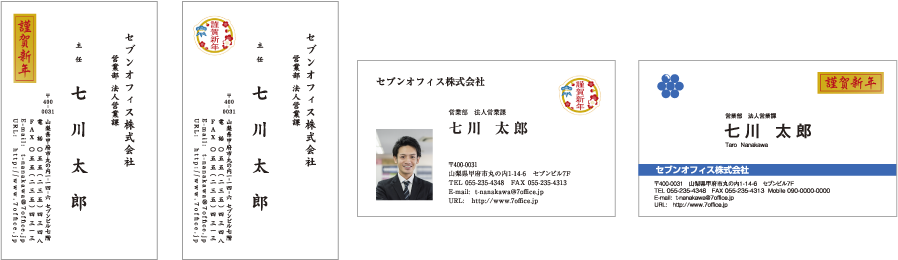 いつもの名刺に貼るだけで、年始ご挨拶用の特別な名刺になる「謹賀新年シール」です。